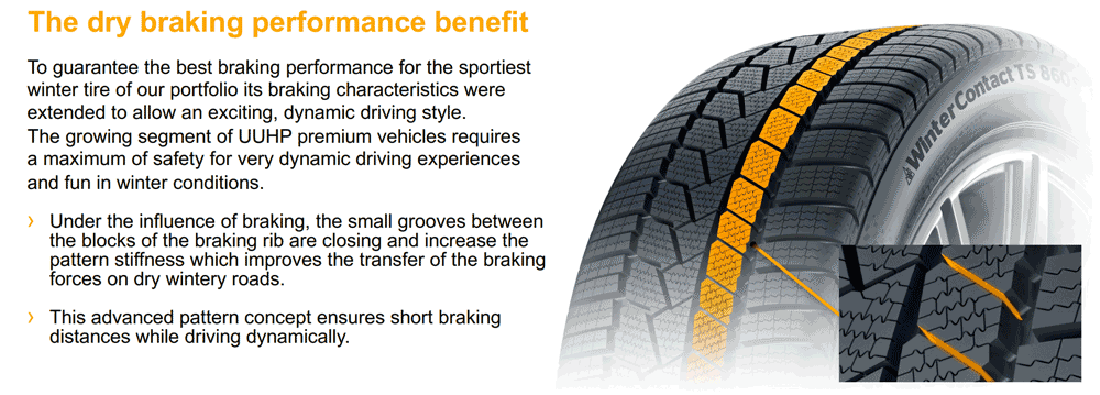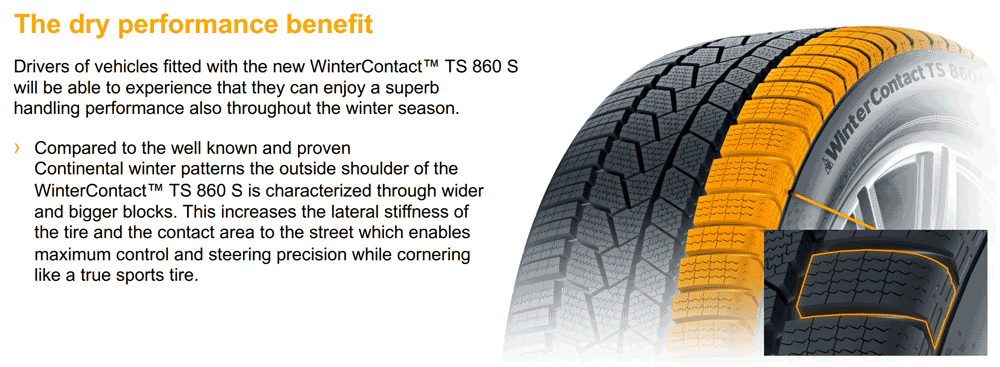 WinterContact 850P testlerde hala büyük başarı gösterirken, Continental sportif ve güçlü otomobiller için daha iyi bir kış lastiği performansı dengesi bulduklarına inanıyor. Kuru, ıslak ve kar performansı arasındaki dengeyi ayarlayarak, Continental yeni TS860 S'nin BMW M, Mercedes AMG ve Porsche gibi yüksek performanslı araçlar için en uygun lastik olduğuna inanıyor.