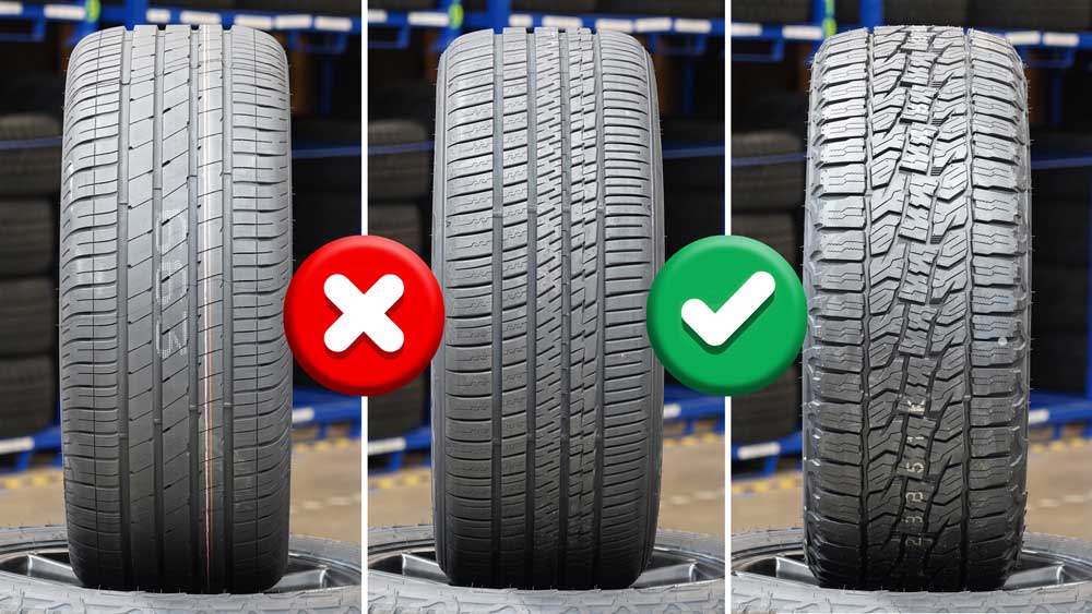 Başlamadan önce, lastiklerin üçünün 3PMSF işareti taşıdığını belirtmekte fayda var; bu, bazen "şiddetli kar derecelendirmesi" olarak da adlandırılan, üç tepeli dağ kar tanesi sembolüdür. Kış, Her Hava Koşulu ve Her Arazi lastikleri 3PMSF işaretini taşırken, dört mevsim lastiği taşımamaktadır. Test ebatı 265/65 R17 idi ve test için sadece arkadan çekişli modda bir Toyota Hilux kullandık.
